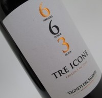「TRE ICONE(トレ イコーネ)」の名前は、3か所(アブルッツォ、プーリア、シチリア)の個性ある葡萄畑を象徴し、「663」という数字は、3つの畑を結んだ距離(km)を示しています。